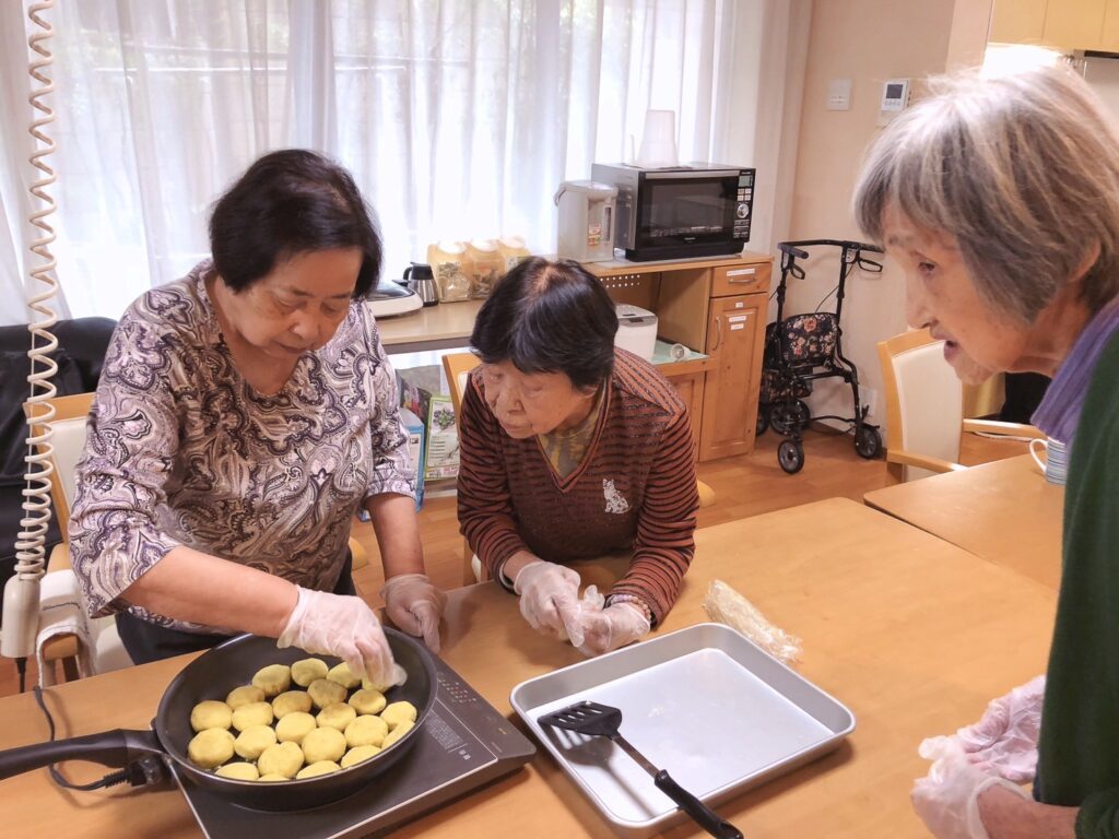 さつまいもを茹でてから皮をむき、つぶして一口大に整えフライパンで焼いて完成です