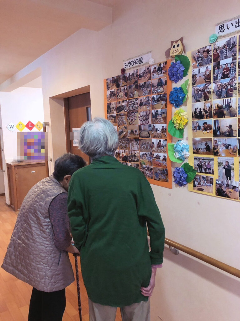 今日は運動されている時に廊下に貼られている皆様の写真を