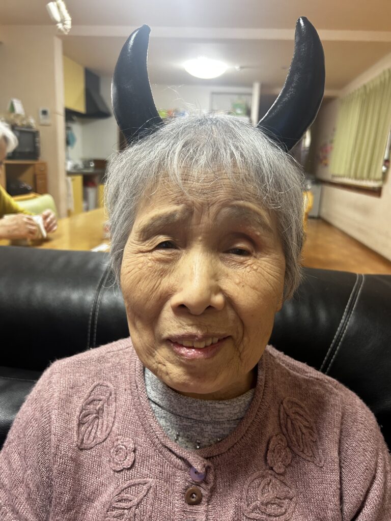 記念に撮影した一枚。どうやら、他の入居者さんが「これかわいいからつけな」とお渡ししていたようです。