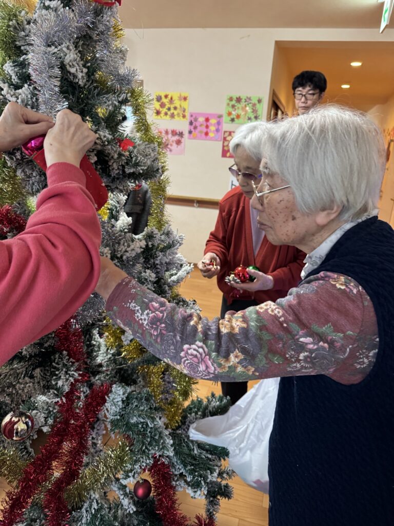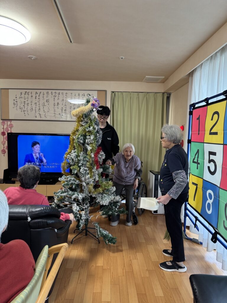 みんなで飾り付けたツリーは25日までキラキラと点灯してます。