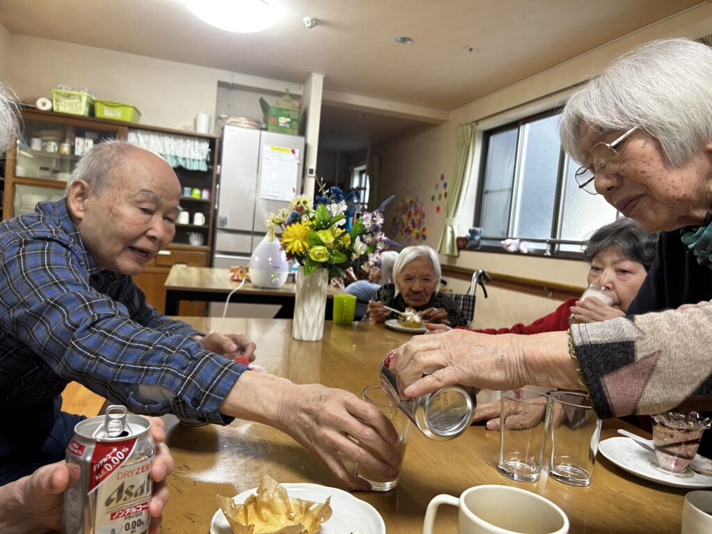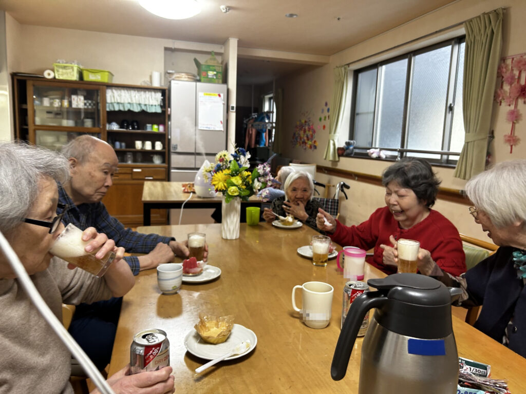 翌日はスタッフと入居者様と一緒に誕生日のお祝いです。