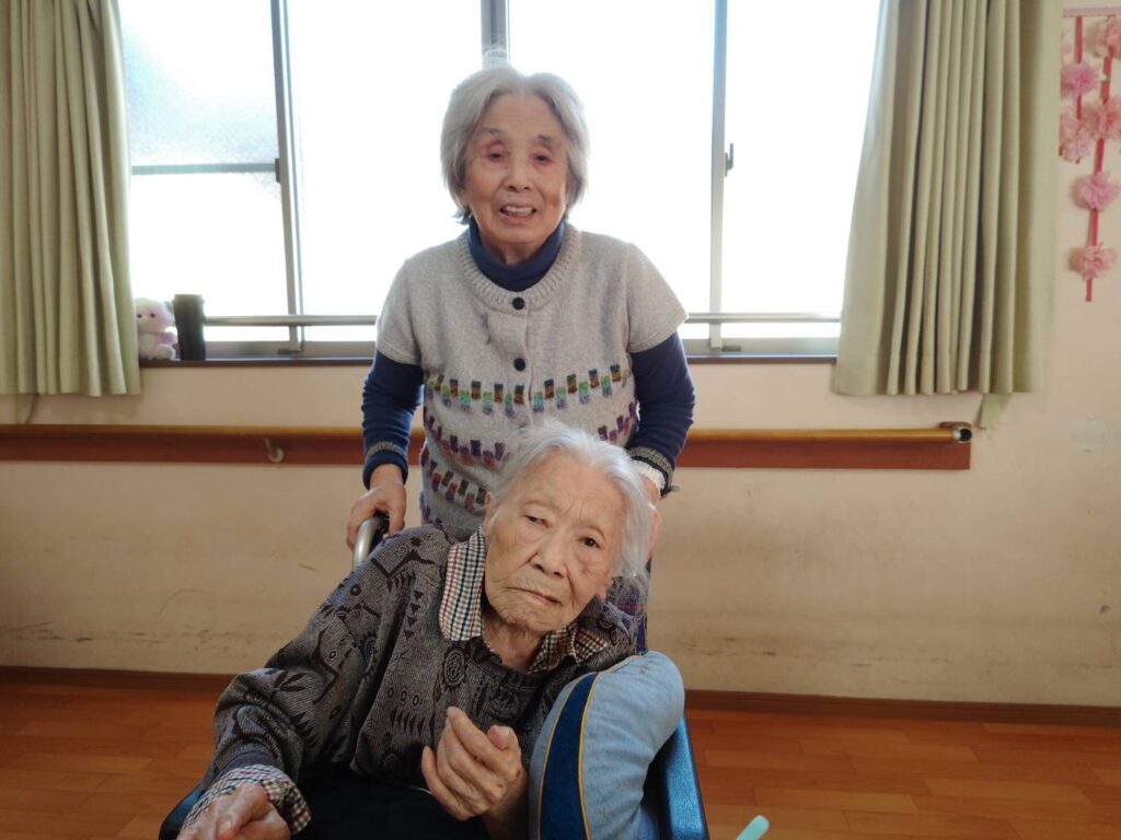一緒に車椅子を押しながら施設内を散歩されていました。
