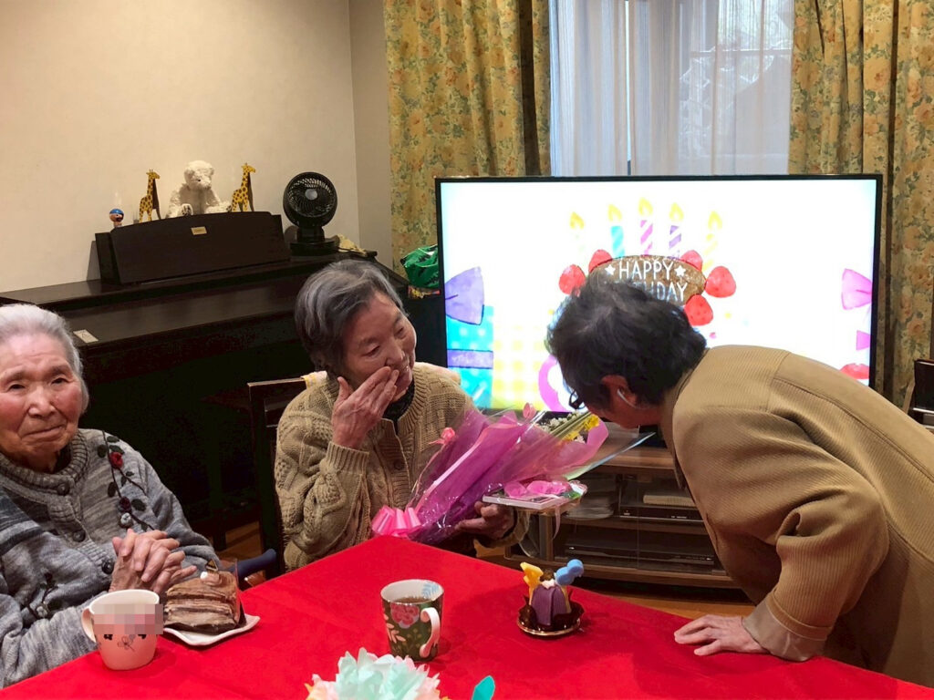 娘さんと入居者さん、職員でお祝いをさせていただきました。