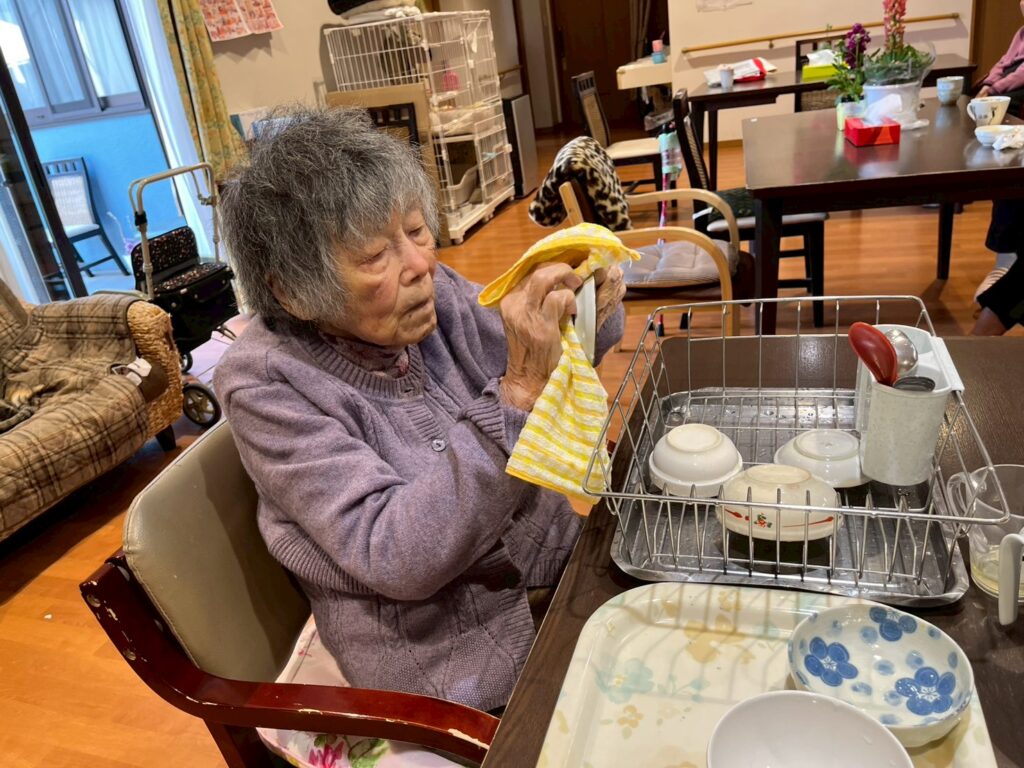 「出来るかな?」と言いながら丁寧に食器拭きをされるNさん