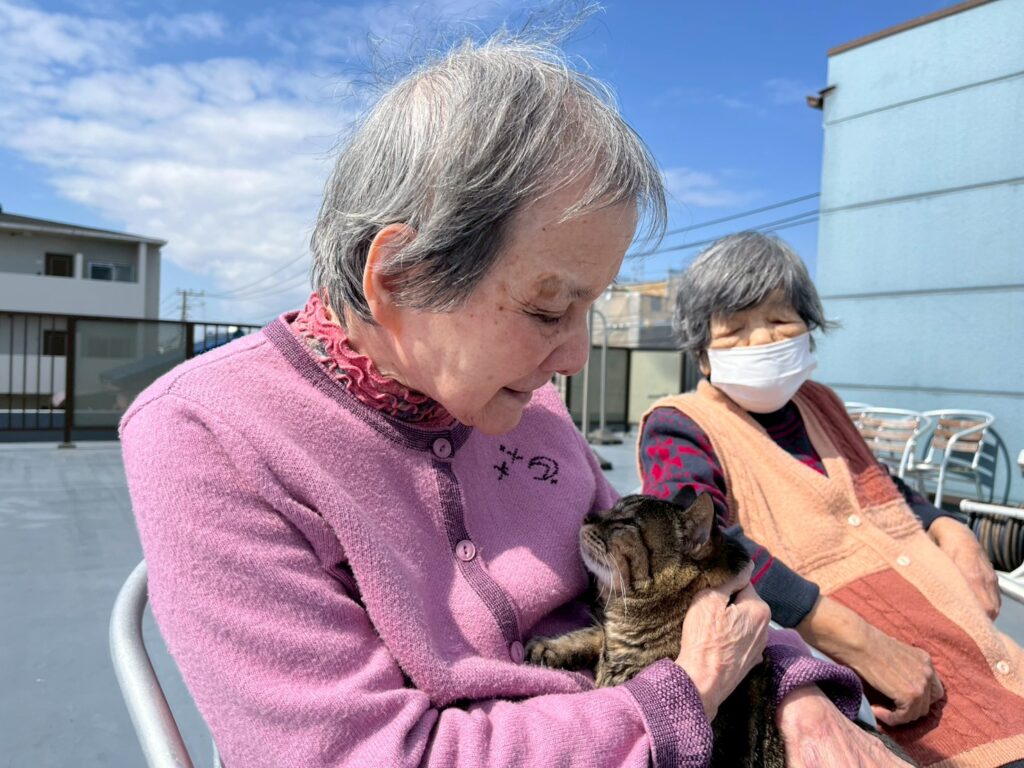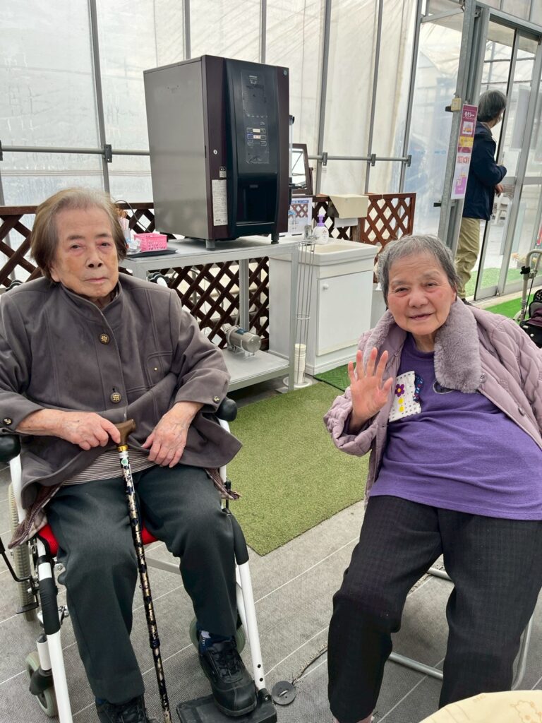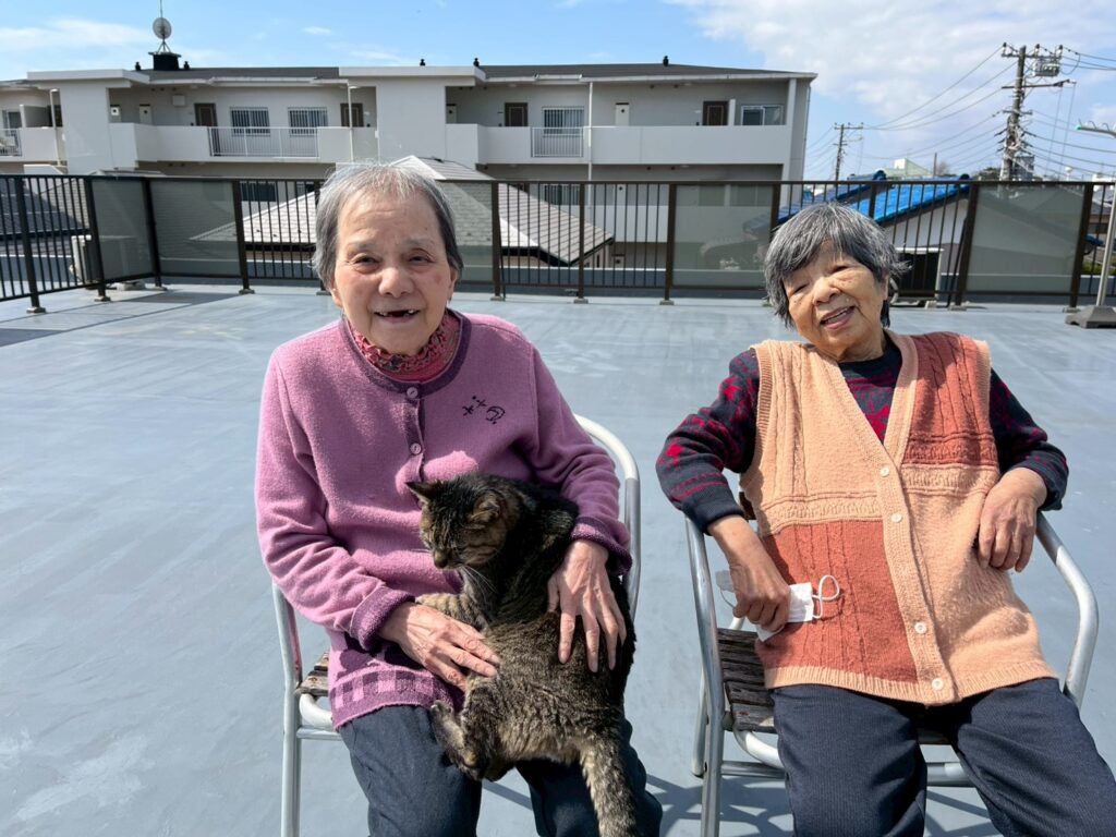 「いい天気ねー!」とおふたりで日向ぼっこをしていると・・・